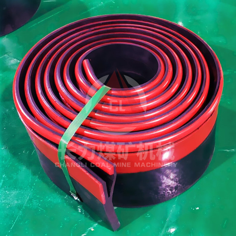 防溢裙板是皮帶機的降塵裝置,外觀來看是一種黑紅色的帶狀橡膠板,簡單來說它是橡膠與聚氨酯的復合體。皮帶機噴霧裝置也可以起到降塵作用,但是降塵區(qū)域有限,只能減少機頭部分的灰塵,安裝防溢裙板之后可密封整條皮帶機。把皮帶機運輸物料時產(chǎn)生的大量灰塵密封在導料槽里。